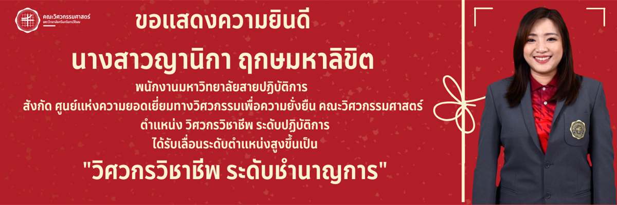 นางสาวญานิกา ฤกษมหาลิขิต ได้รับเลื่อนระดับตำแหน่งสูงขึ้น เป็น วิศวกร ระดับชำนาญการ